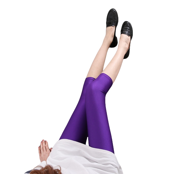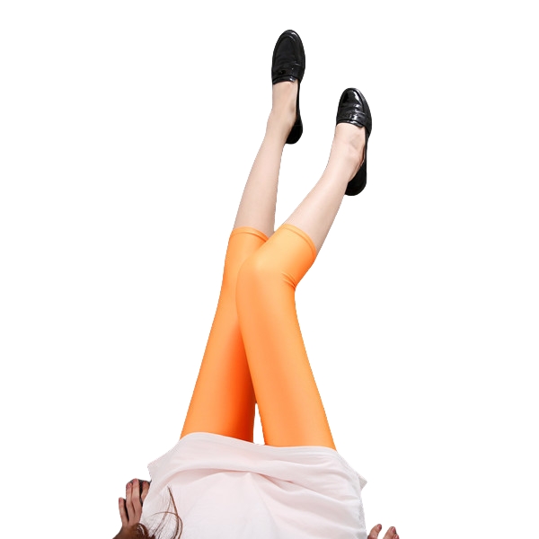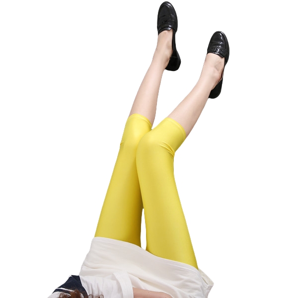 Dam sommar fluorescerande färgade smala capri-leggings glansiga stretchiga strumpbyxor glansiga ogenomskinliga neonleggings för flickor 50-80kg vikt